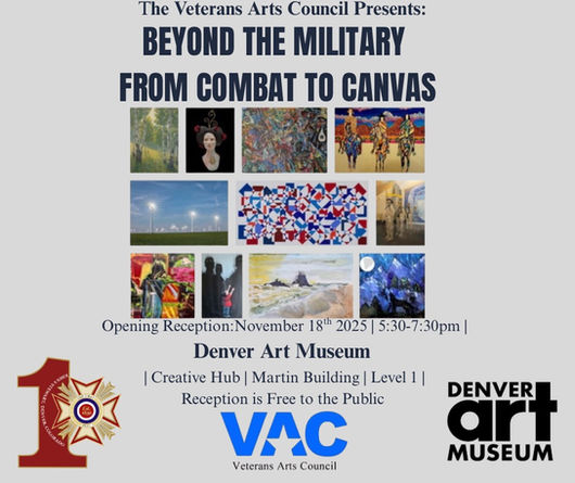 Founded in 2015, the Veterans Arts Council (VAC) is a signature program at VFW Post 1 and is open to all military veterans. Operating as its own non-profit veteran organization under the VFW Post 1 umbrella, the VAC showcases, mentors, educates and provides economic opportunities for veteran artists working in any medium from all generations and service backgrounds. The VAC art gallery at VFW Post 1 is one of the largest galleries in Denver’s Art District on Santa Fe and arguably one of the largest showcases of veteran artwork nationally. Veteran artists at the VAC gallery range from those new to gallery representation to artists who are nationally and internationally known. Each year, approximately 150 veteran artists, 80 percent of whom are disabled veterans, are the engine behind the VAC. With less than 1 percent of Americans currently serving in the military, bridging the gap between veterans and civilians has been a cornerstone initiative of the VFW Post 1 and the VAC. First Friday Arts Walks, hosted by the VAC, are open to the public and attract over 40,000 visitors each year to the gallery. The VAC also welcomes a number of civilian artists to exhibit their work in the gallery, alongside their veteran colleagues. Beyond the walls of the art gallery, the VAC works with the VA Eastern Colorado Health Care System as the authorized non-profit vendor representing all veteran artists displaying and selling their art at the Rocky Mountain Regional VA Medical Center. The VAC also partners with legislators at the Colorado State Capitol for its “Capitol Arts Project,” pairing VAC members with participating Colorado state legislators to display art in the capitol offices of our state representatives and senators. The VAC also works with public and private community sector partners to create veteran lead art exhibitions at diverse locations around the metro area like Regis University and the Englewood Public Library.